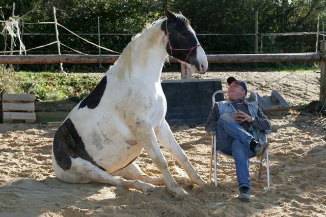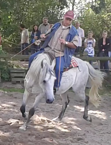 Dieses Spiel sollte oft zwischen den anderen gespielt werden, um die Aufmerksamkeit des Pferdes zu erhalten und Vertrauen aufzubauen. Es geht darum, für das Pferd eine ungewohnte Situation darzustellen, die es verschrecken könnte. Genau das soll es allerdings nicht tun. Im Idealfall bleibt das Tier immer ruhig und gelassen stehen, dies beweist großes Vertrauen. Das ganze Spiel soll im Rhythmus bleiben. Wurde beispielsweise damit angefangen, um das Pferd herum zu springen und danach sich auf seinen Rücken zu werfen, so muss es später wieder passieren - mit unveränderter Reihenfolge. Dies dient dazu, das Pferd nicht mit diesem Situationen zu überhäufen.