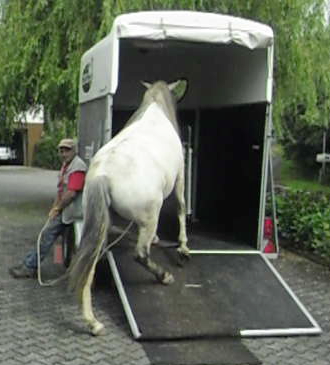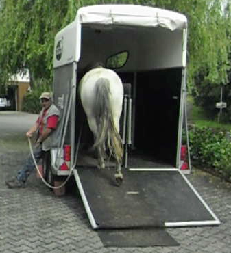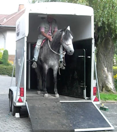 Es sollte bei mehreren Metern angefangen werden, lässt sich aber später auf sogar nur etwa 60 Zentimeter reduzieren. Es trainiert das Vertrauen und macht das Verladen später einfacher. Das Pferd soll hinter dem Menschen durch den Engpass gehen, ohne sich zu weigern.
