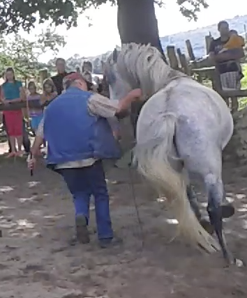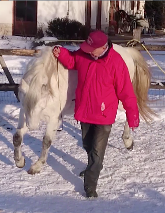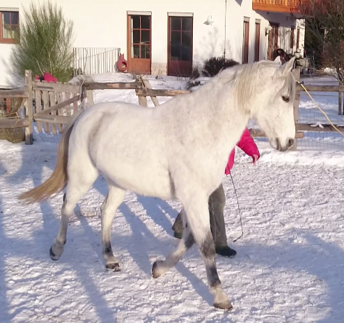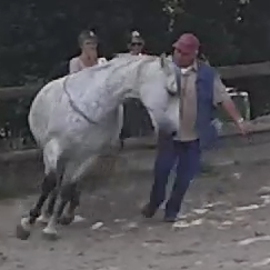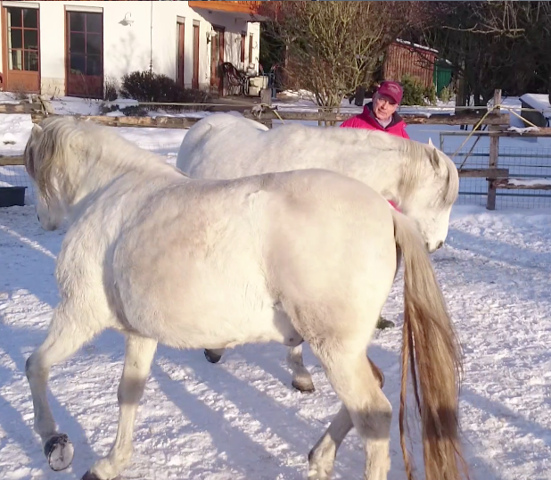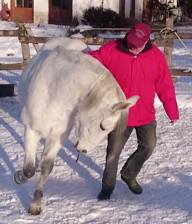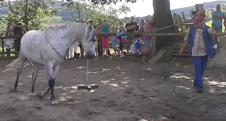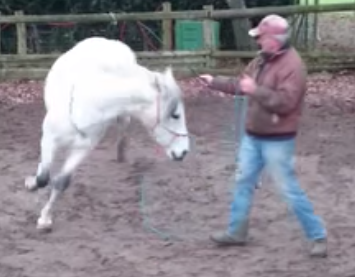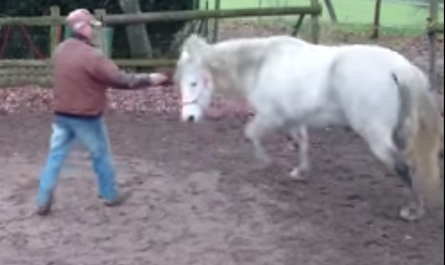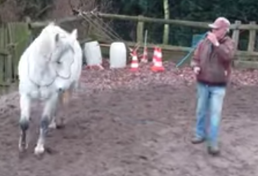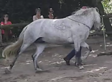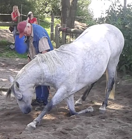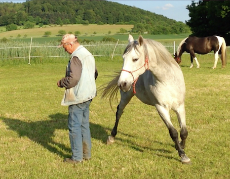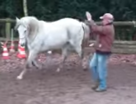 Oder du jagst es im Roundpen von rechts nach links, bis es aufgibt und zu dir kommt,