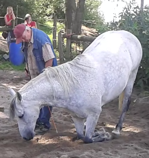 Bei diesem Spiel übt man einen sich langsam aufbauenden Druck auf eine beliebige Stelle des Pferdekörpers aus. Der Druck verschwindet sofort, wenn das Pferd ihm weicht. Darauf folgt ein vertrauliches Einreiben der Stelle, um dem Pferd zu sagen, dass seine Reaktion richtig war. Besonders wichtig ist, dass das Pferd dem Druck mit der Vorhand und der Hinderhand problemlos weicht.